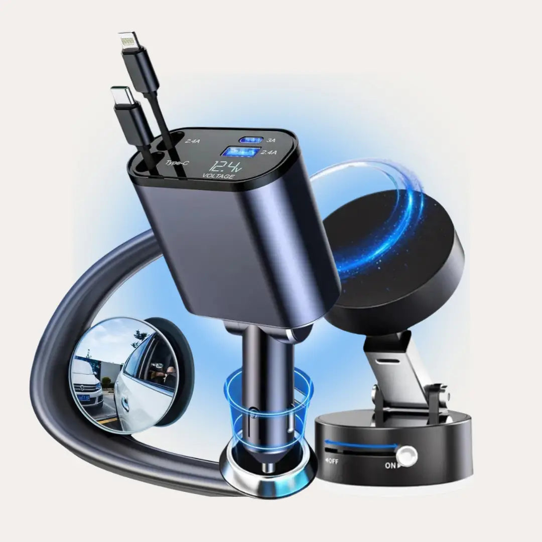 ✔ 4 in 1 Retractable Car Charger
